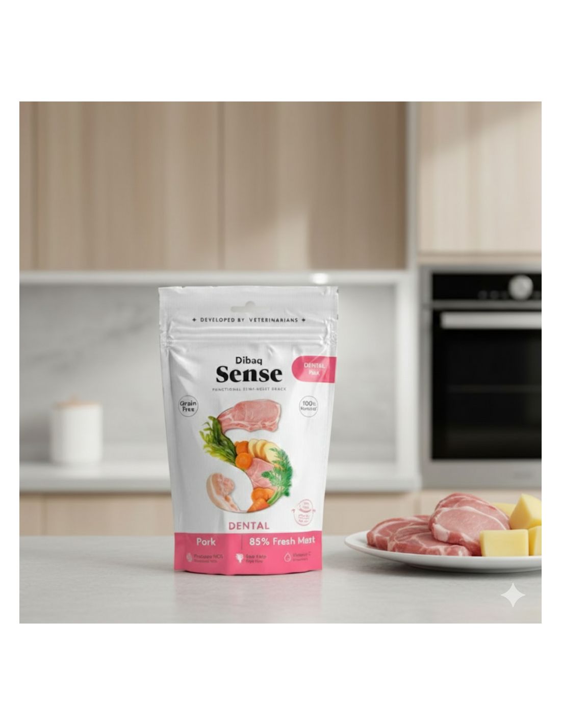 Dibaq Sense Pig Dental Snack is a semi-moist snack made with fresh pork, potato and Kelp. Natural ingredients that help to keep your pet's teeth in good condition.