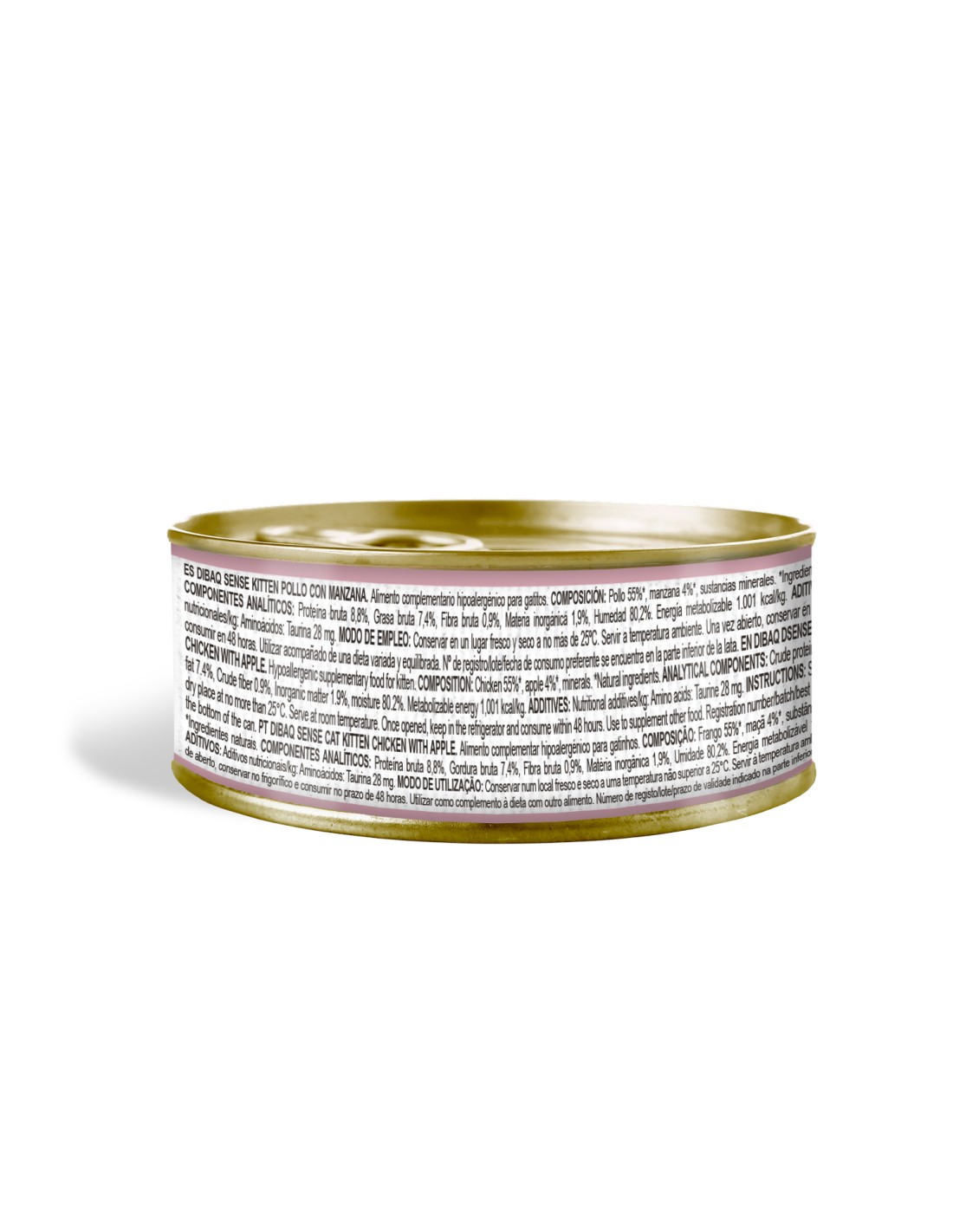 Crude protein 8.8%, Crude fat 7.4%, Crude fibre 0.9%, Inorganic matter 1.9%, Moisture 80.2%. Metabolizable energy 1,001 kcal/kg.