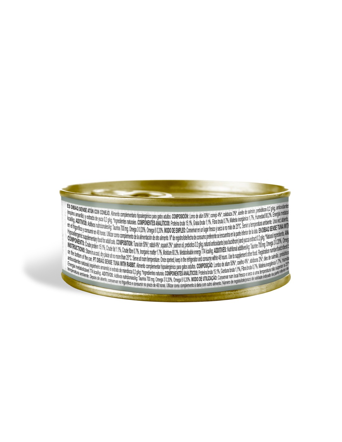 Dibaq Sense Tuna with Rabbit Can is a hypoallergenic can for cats made with fresh tuna and rabbit meat, pumpkin, prebiotics and yucca extract to neutralize odors.