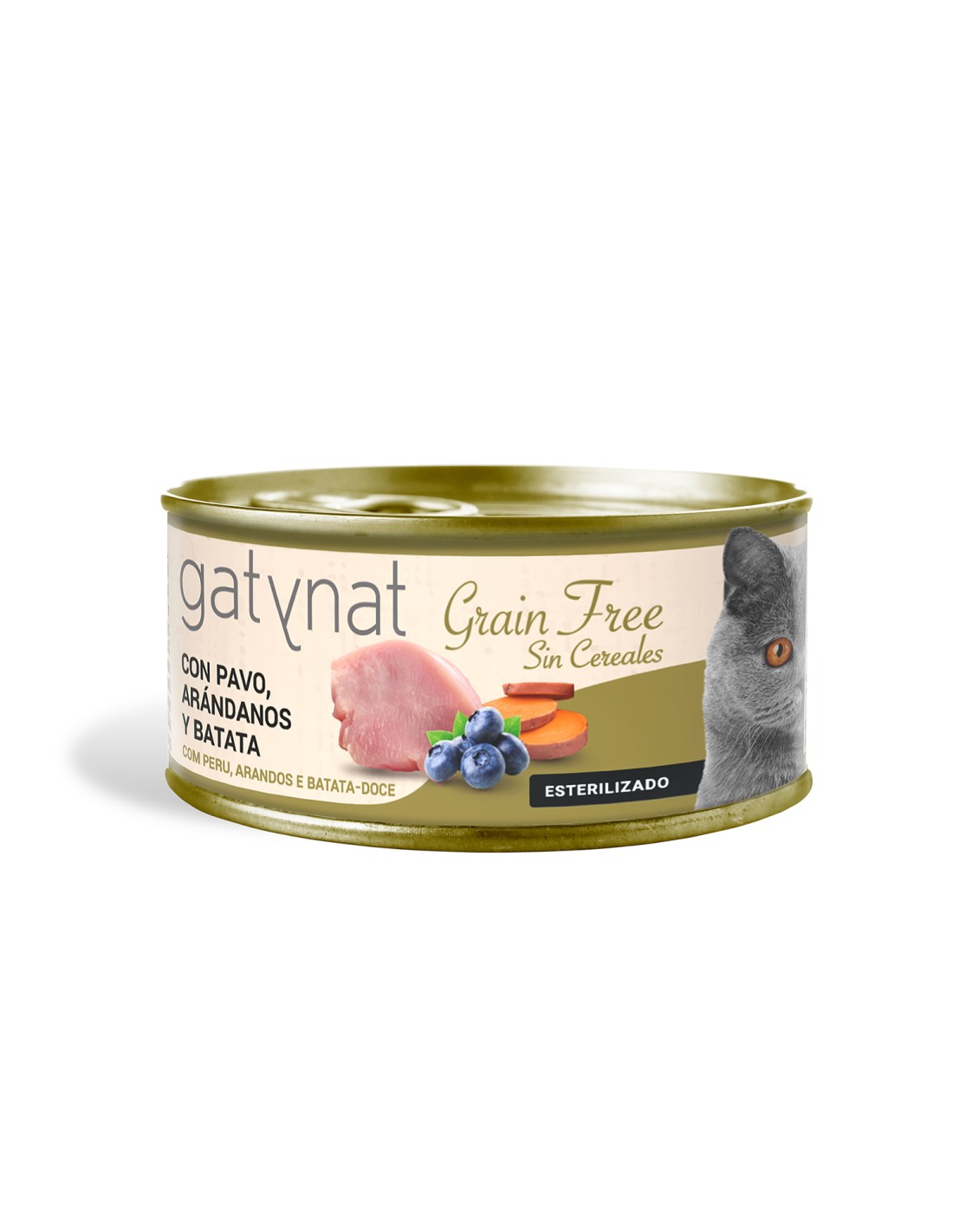 Alimento completo y equilibrado para gatos adultos y gatos esterilizados. Receta sin gluten elaborada con pavo, arándanos y batata. Además es baja en calorías para ayudar al control de peso.