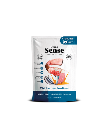 Los bocaditos en salsa Dibaq Sense combinan lo mejor de la comida gourmet para tu gato, ofreciendo un alimento completo para gatos de alta calidad. Cada pack incluye un surtido de bocaditos en salsa con pollo, perfecto para aquellos que buscan un toque gourmet en cada comida. La composición de estos productos asegura la máxima proteína, humedad y fibra bruta, brindando todo lo necesario para mantener a tu felino sano y feliz.