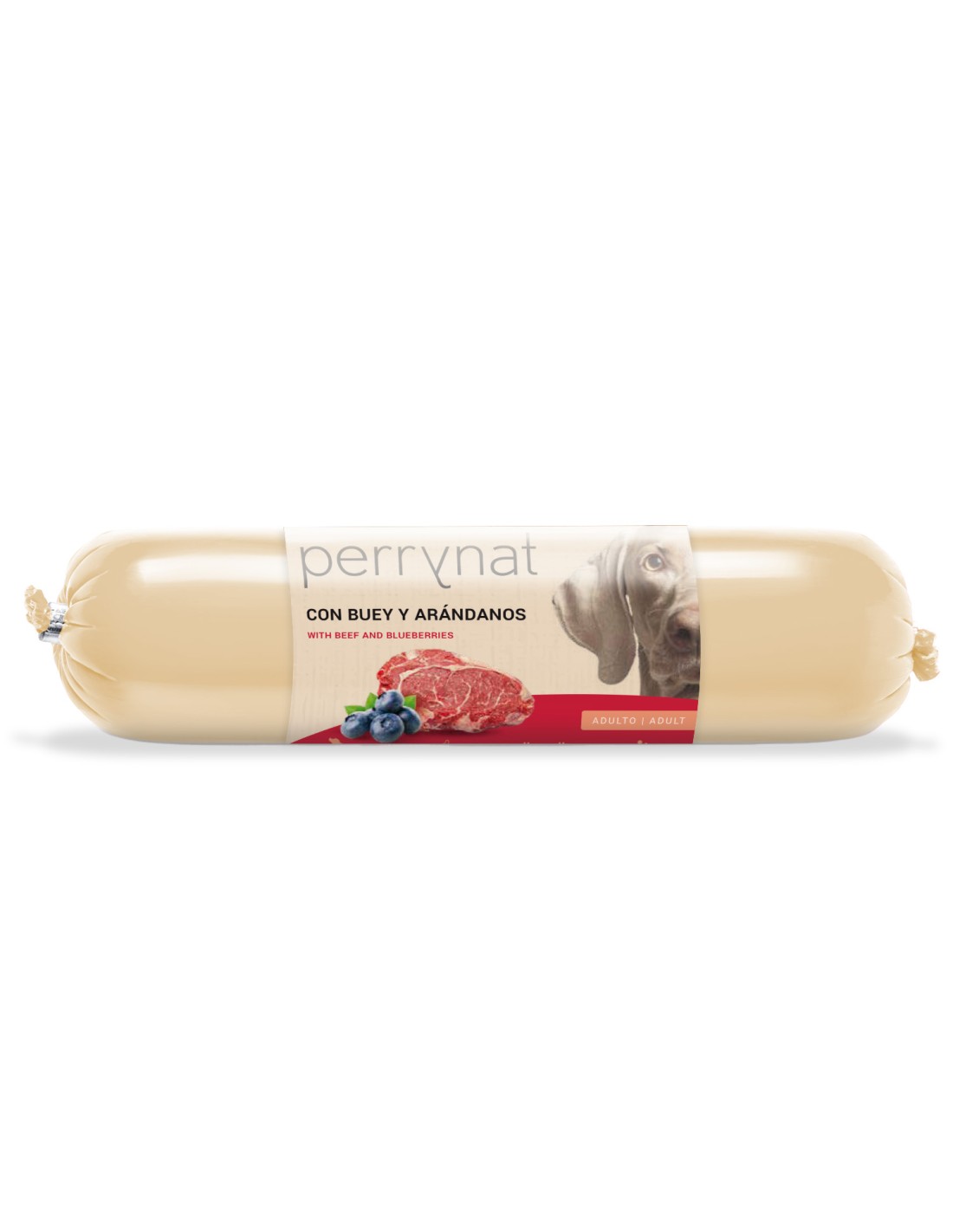 Perrynat Salchicha Buey y Arándanos es un alimento húmedo natural para perros, elaborado con carne de buey de alta calidad y arándanos ricos en antioxidantes, ideal para una dieta equilibrada y saludable.